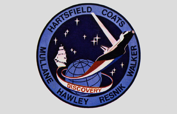 Crew consisted of Commander Henry W. Hartsfield, Jr., Pilot Michael L. Coats, Mission Specialists Judith A. Resnick, Steven A. Hawley, Richard M. Mullane and Payload Specialist Charles D. Walker.