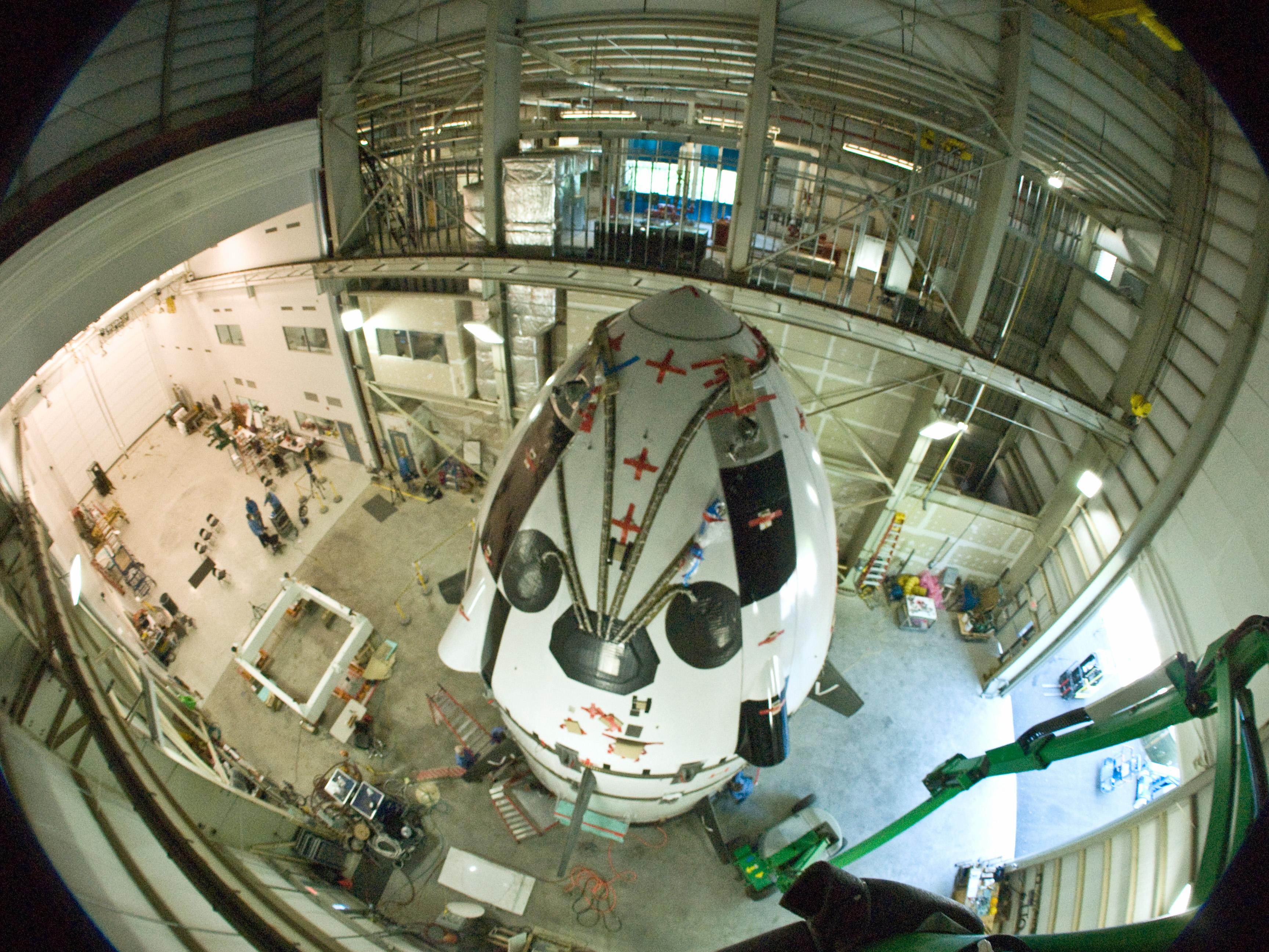 A 'fish-eye' view of preparations at NASA's Wallops Flight Facility taken from above the Max Launch Abort System vehicle.