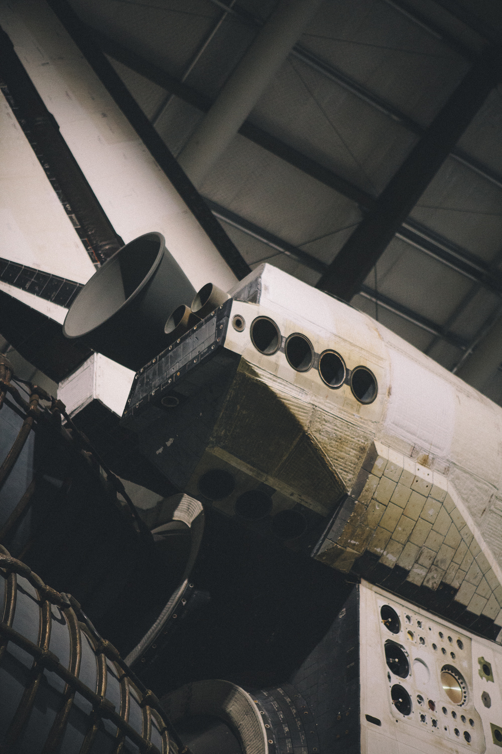 The engines of retired space shuttle Endeavour are seen in close-up at the California Science Center in Los Angeles. Photo taken May 14, 2014.