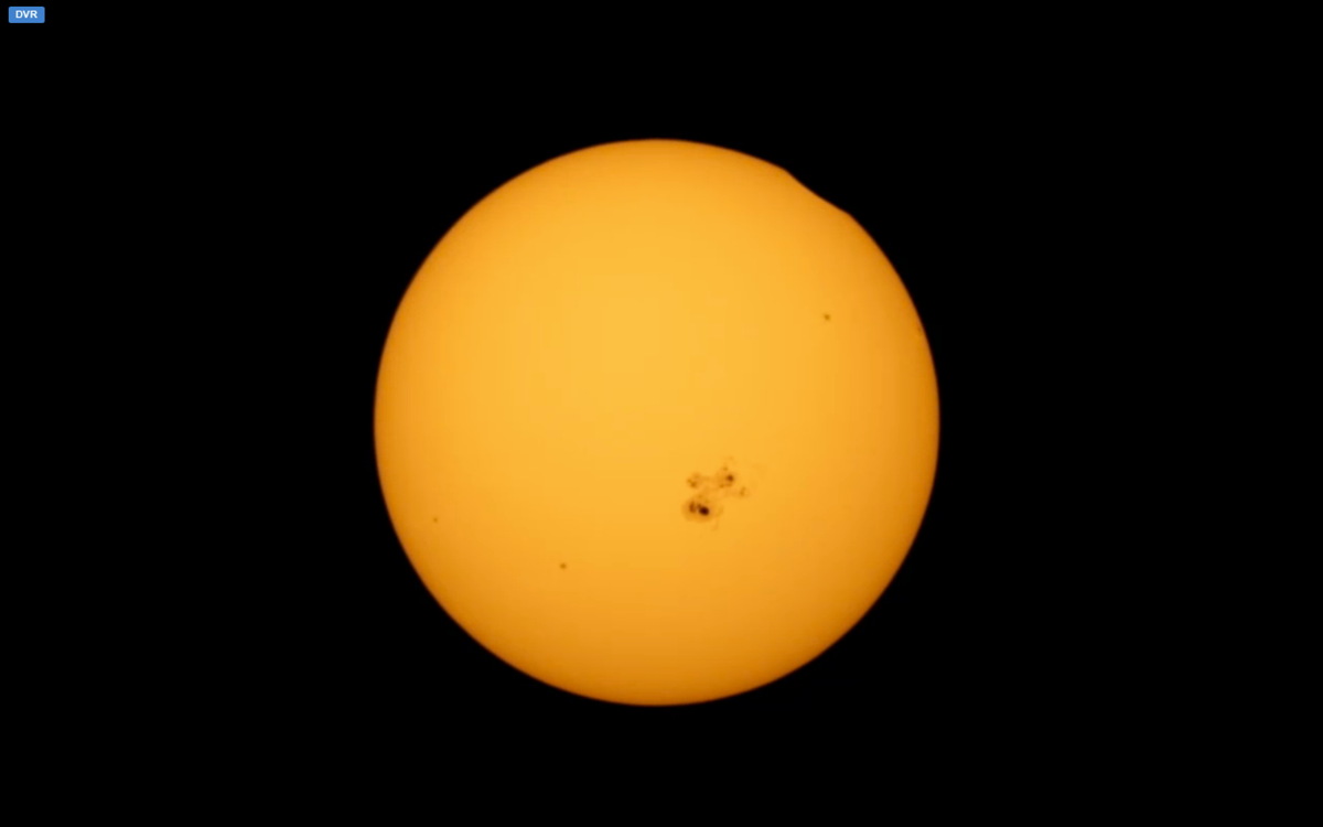The partial solar eclipse of Oct. 23, 2014, begins, as seen by the Mt. Lemmon SkyCenter in Arizona, presented on their live webcast.