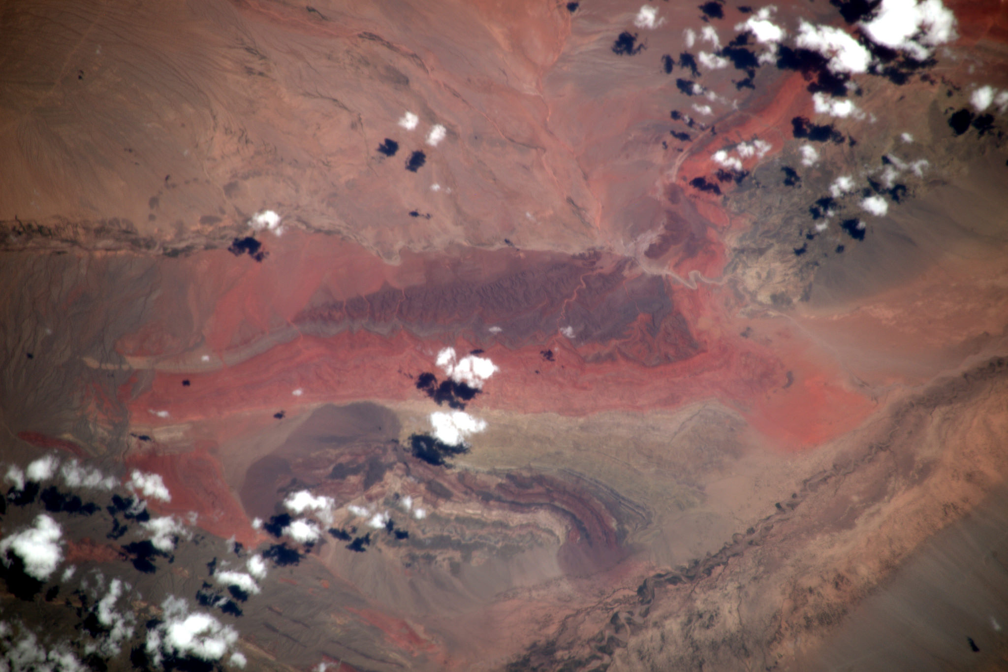 This view of the Andes on December 3, 2016, contains a variety of colors to see: browns, grays and reds.
