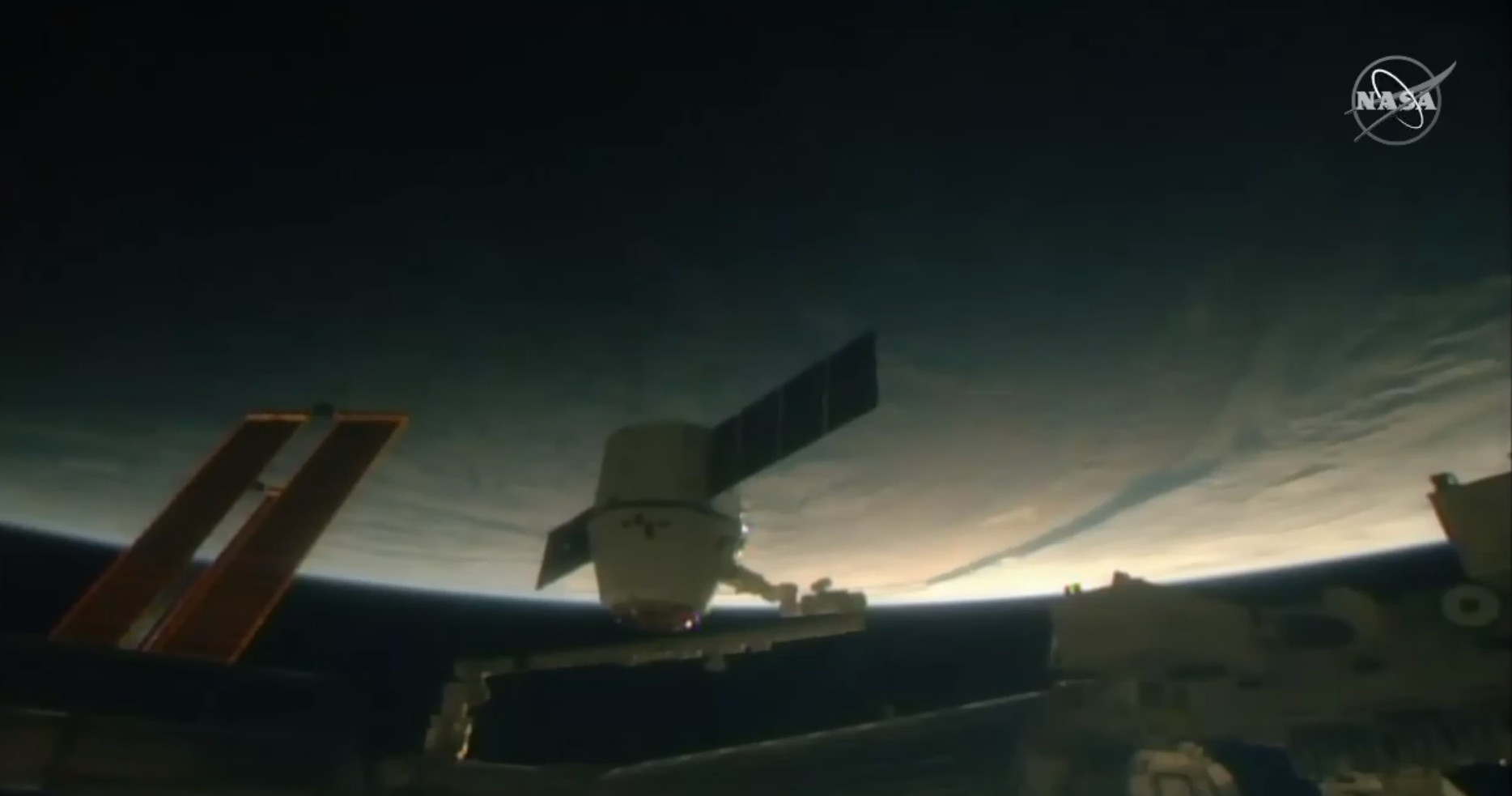 In another image by ESA's Alexander Gerst, the Earth plays an awesome backdrop to the Dragon spacecraft. The craft carries experiments to the ISS including the GEDI — to help understand the topography of Earth for carbon and water processes, biodiversity and habitat; RRM3 — to further develop technology for the Restore-L mission and other investigations; and more.