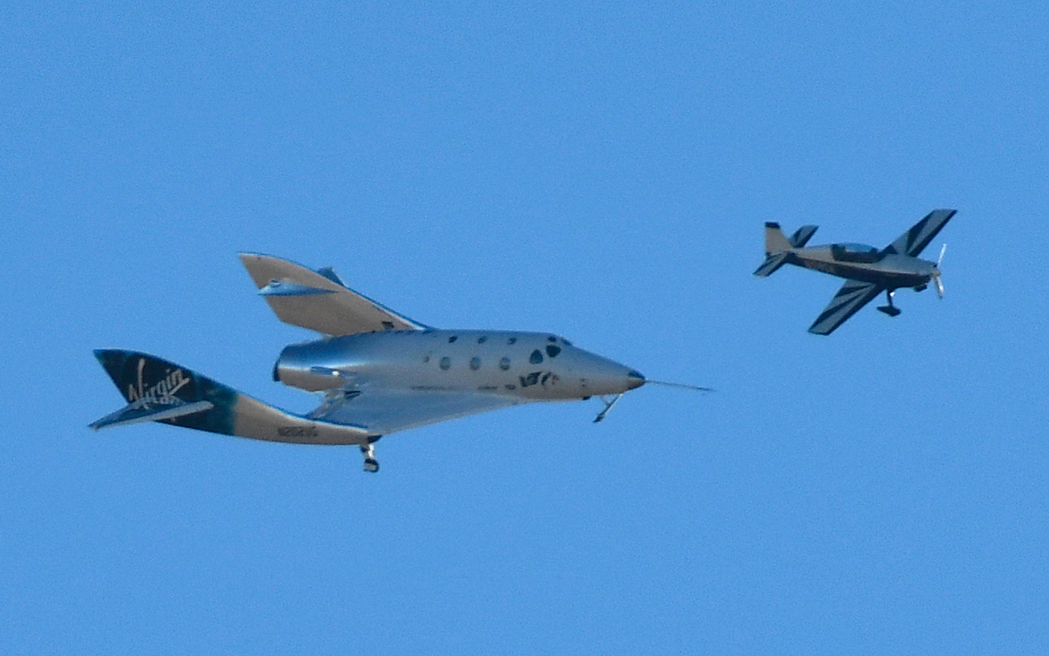Virgin Galactic's WhiteKnightTwo and its cargo, SpaceShipTwo, as seen shortly after the two vehicles separated midflight.