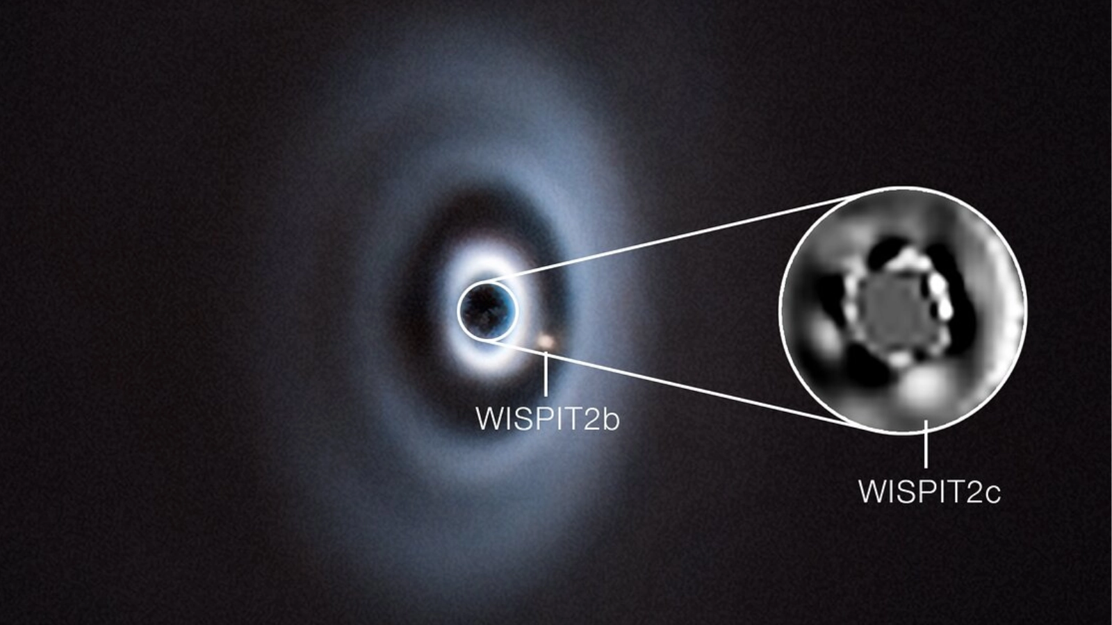 WISPIT 2b was the first infant planet discovered around this infant star, detected last year and determined to have a mass around five times that of Jupiter and orbiting its parent star at a distance equivalent to 60 times the distance between Earth and the sun.