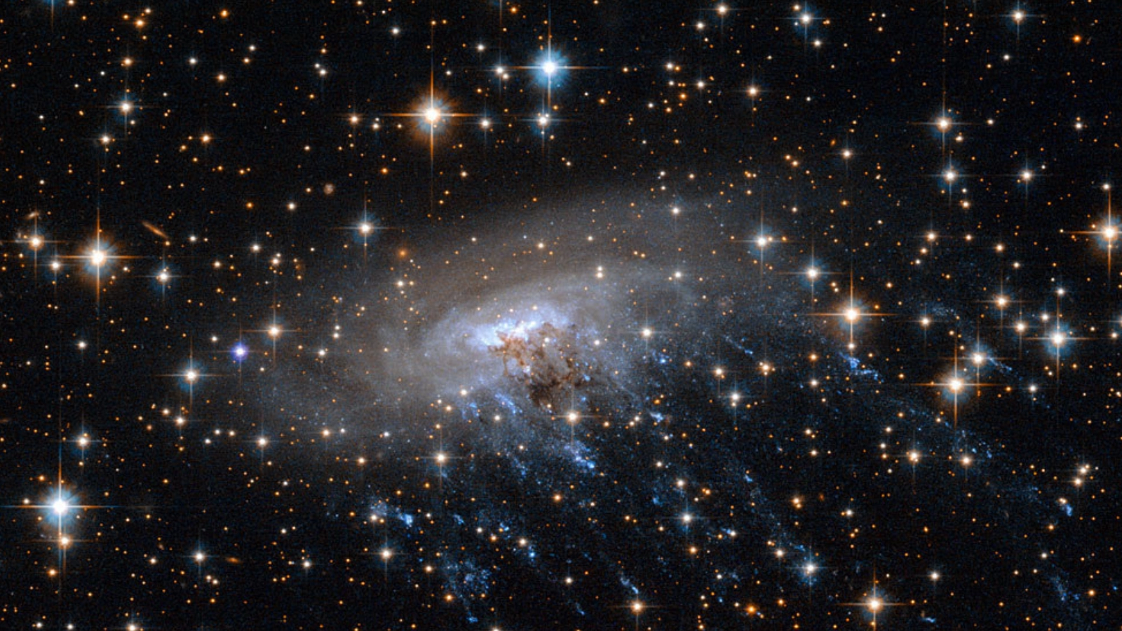 The JWST image of ESO 137-001 shows a galactic disk that appears relatively normal, not dissimilar from our own modern-day galaxy, barring the distinct gas trails. Bright blue "knots" can be seen in these tendrils that represent groupings of young stars.