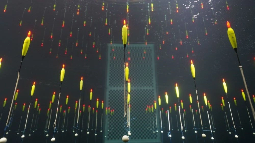 China's gigantic new detector will consist of more than 24,000 optical sensors beaded across 1,211 strings, each 2,300 feet (700m) long, that will bob upward from their anchoring point on the seabed.