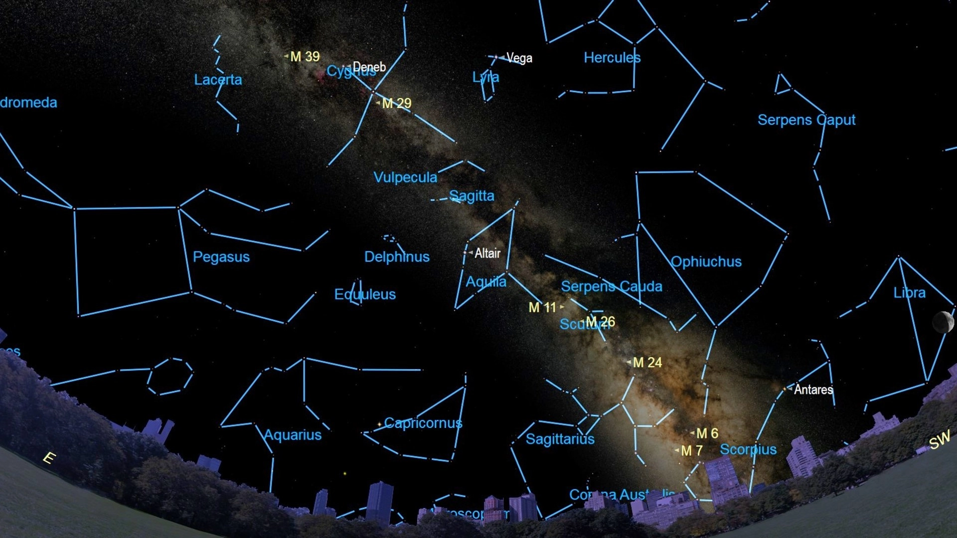 The Milky Way will be visible in the southern horizon throughout September, along with the countless knots and clusters of stars scattered throughout the galaxy. Many Messier objects will be visible on Thursday (Sept. 1), including Messier 39 and the Cooling Tower Cluster in Cygnus the Swan, the Wild Duck cluster and Messier 26 in the Scutum constellation, the Sagittarius Star Cloud, and Ptolemy's Cluster and the Butterfly Cluster in Scorpius.