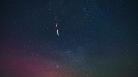 Geminid meteors streak under green sky | Space photo of the day for Dec. 19, 2025