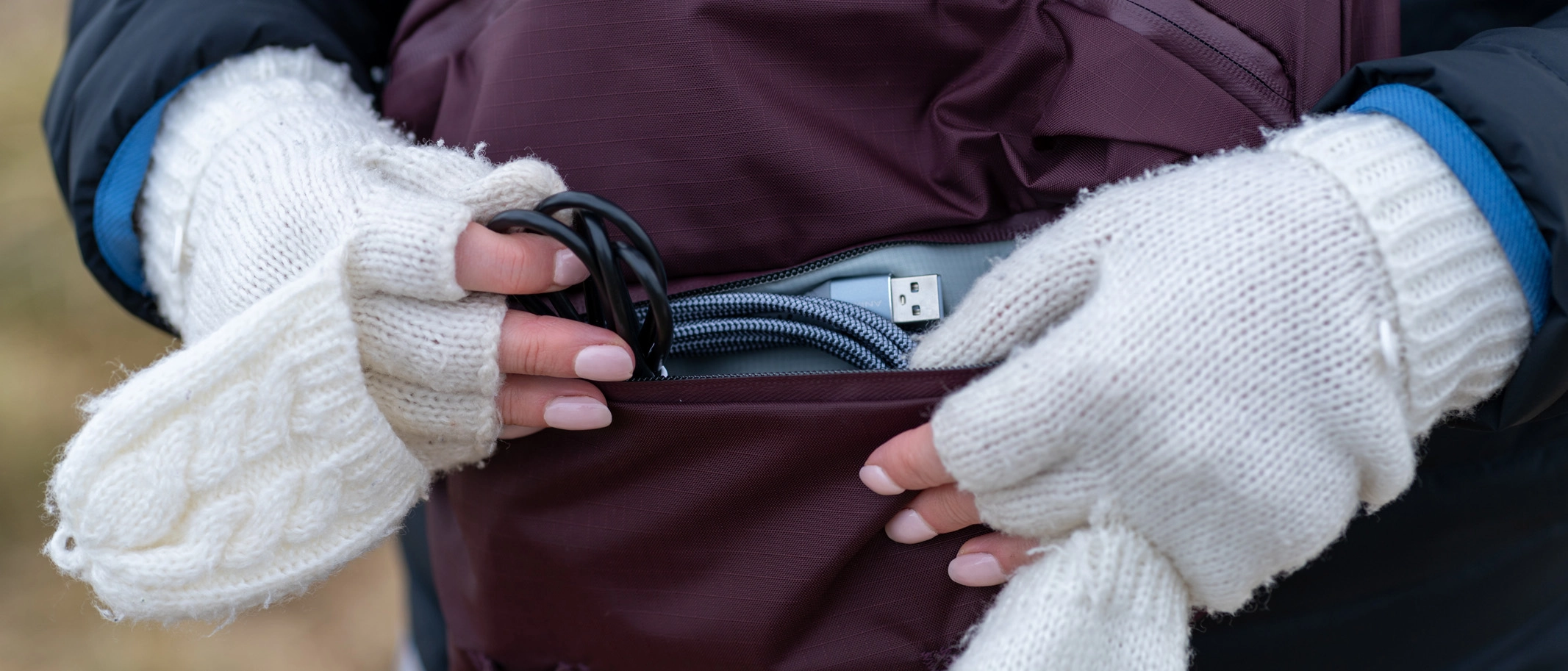 I also found the zippers a bit fiddly to pull with one hand, even though they seemed strong and the toggles were easy to grab. The hidden drop phone pouch is great if you're using the bag when traveling, as it keeps your phone safe but is still easy to access.