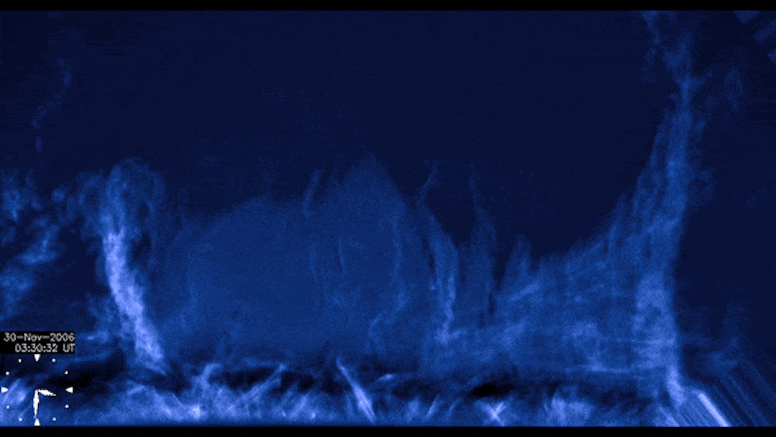 The dazzling phenomenon is known as a polar crown prominence (PCP), according to Spaceweather.com. PCPs are similar to normal solar prominences, which are loops of plasma, or ionized gas, that are ejected from the solar surface by magnetic fields. However, PCPs occur near the sun's magnetic poles at latitudes between 60 and 70 degrees North and South, which often causes them to collapse back towards the sun because the magnetic fields near the poles are much stronger, according to NASA. This collapse back to the sun has earned them the nickname "plasma waterfalls."