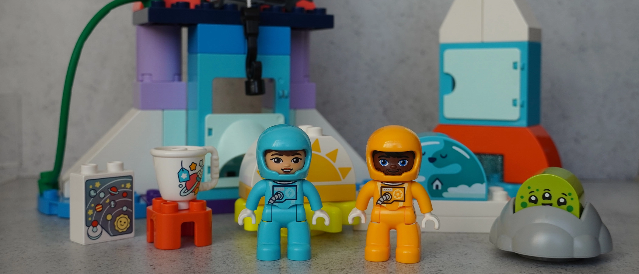 Being Duplo, you won't find any minifigures here but two chunky play figures are included: A pair of astronauts wearing blue and yellow space suits. Unlike minifigures, they don't need to be assembled — they come in one piece and aren't made to be taken apart. They have movable arms and legs and rotating heads, making for fun and easy roleplay.